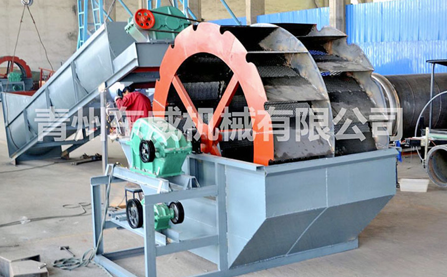 在輪斗洗砂機(jī)的工作過程中,砂石的翻滾和研磨主要依靠輪斗的旋轉(zhuǎn)來實現(xiàn)。具體來說,當(dāng)砂石通過給料設(shè)備進(jìn)入洗砂機(jī)的洗槽內(nèi)后,輪斗開始旋轉(zhuǎn)。